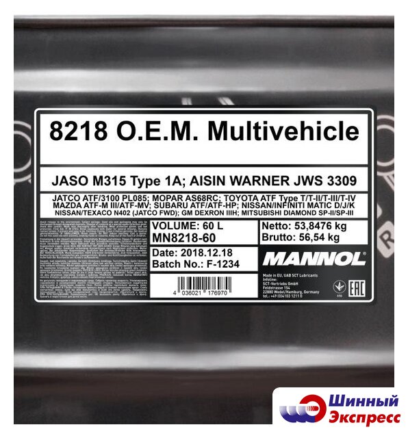 | Спецификации и допуски | AISIN WARNER JWS 3309JASO M315 Type 1AJATCO ATFJATCO 3100 PL085TOYOTA ATF Type T/T-II/T-III/T-IVNISSAN/INFINITI MATIC D/J/KNISSAN/TEXACO N402 (JATCO FWD)MITSUBISHI DIAMOND SP-II / SP-IIIMAZDA ATF-M III / ATF-MVDAIHATSU ALUMIX ATF MULTIHONDA ATF-Z1 (not for CVT) / ATF DW-1SUZUKI 3314, 3317, 2384KSUZUKI ATF OIL /ATF OIL SPECIALSUBARU ATF / ATF-HPHYUNDAI/KIA SP-II / SP-IIIIDEMITSU K17-Jaguar X Type 2001-2005MOPAR AS68RCGM DEXRON IID/IIE/IIIF/IIIG/IIIHCHRYSLER ATF +3/+4VW/AUDI G 052 025-A2 / G 052 162-A1VW/AUDI G 052 990-A1/A2 / G 055 025-A1/A2BMW 7045E (3 Series)BMW ETL-8072B (5 Series)BMW LA2634 / LT71141 (ZF 5 Speed)MB 236.1/.2/.3/.5/.6/.7/.9/.10/.11PORSCHE JWS 3309VOLVO 97340 / 97341VOITH 55.6335.XX (G607)ALLISON C-4ZF TE-ML 03D/04D/11B/14A/14B/16L/17FORD MERCON V, FNR5MAN 339F/V1/V2/Z1/Z2 |